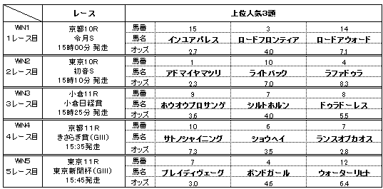 それでは、前日オッズを確認しておきましょう。なお、京都開催分はJRAのオッズ情報がないので、推定値を入れていますので、ご了承願います。