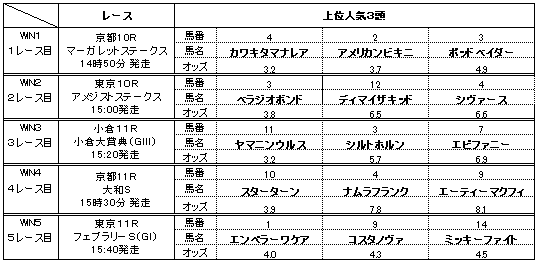 それでは、前日オッズを確認しておきましょう。なお、小倉開催分はJRAのオッズ情報がないので、推定値を入れていますので、ご了承願います。