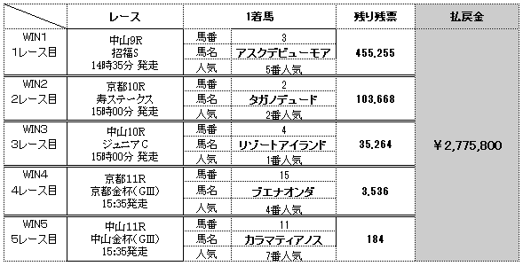 攻略者は14名。払い戻しは約2,901万円。